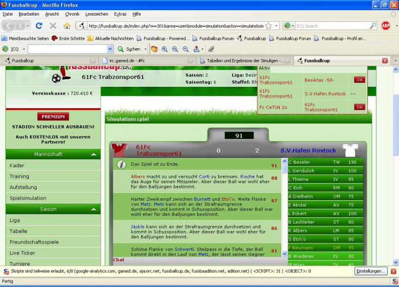 bei uns schon in der 6min beim 1:0 stehen geblieben