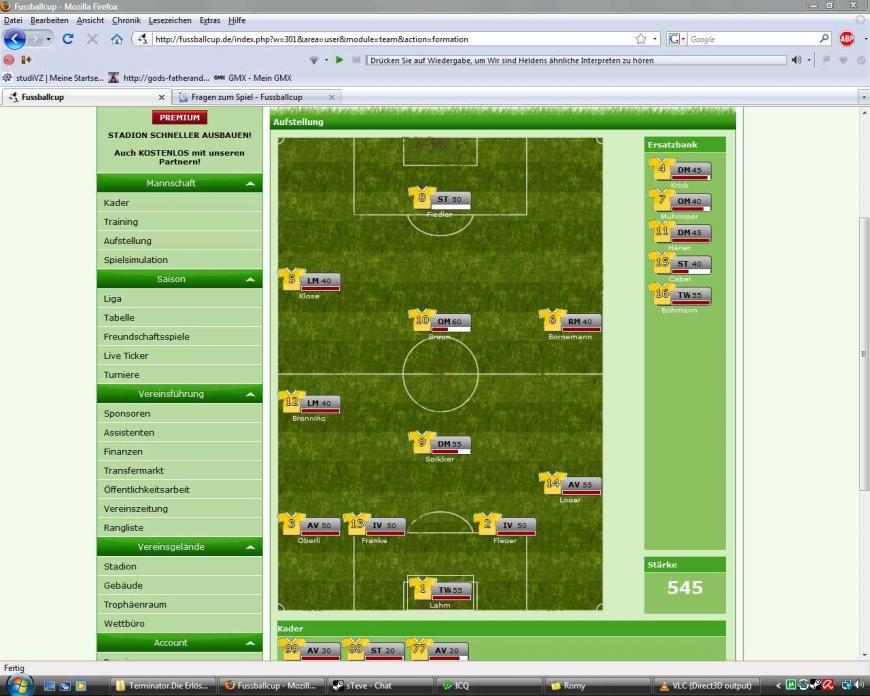 Zweite Saison, heute das erste Spiel 2:1 Verloren. Meine KS beträgt 840 und AS beträgt 545 und mein Ligaspielgegner hatte eine KS von 710
