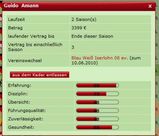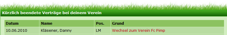 Der andere Spieler wird dagegen noch in meinem Kader aufgelistet.