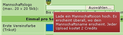 Das Mannschaftslogo ist ein Feature was mit Credits zu bezahlen ist (2 Credits pro hochgeladenes Bild)