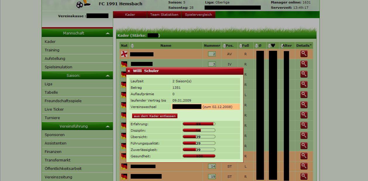 Nach dem ich mich ausgelogged und wieder eingelogged habe, sowohl auch meine Cookies gelöscht habe, musste ich festellen, das bei dem Spieler steht : Wechsel zum 2.12.2008