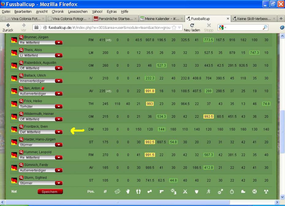 Im Moment befindet sich mein Spieler Frontzeck, Sven, DM, Skill 120, Alter 23 Jahre auf dieser Position!