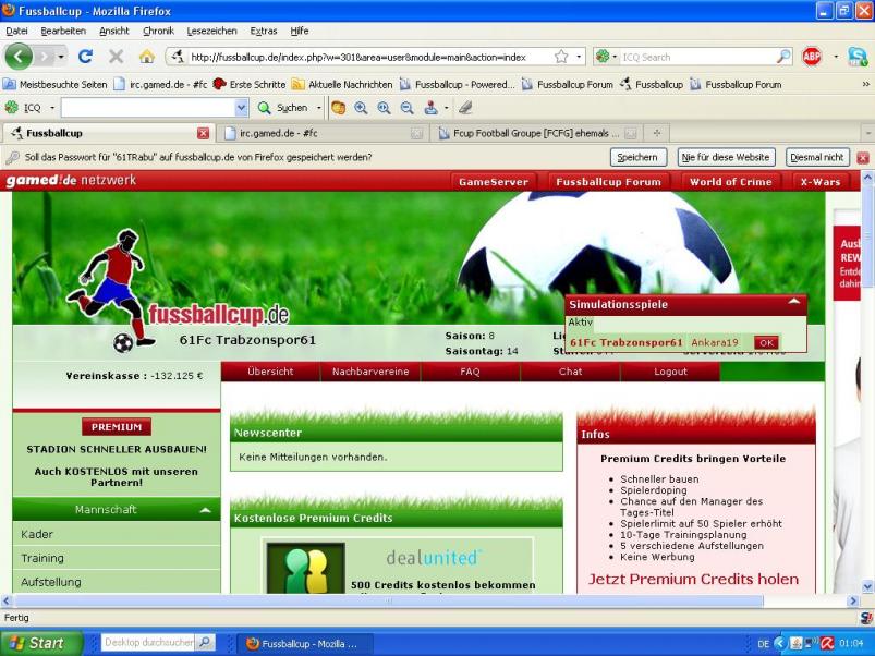 Da sollte eigentlich 1.3xx.xxx Euro stehen, aber da steht jetzt -123.000 Euro oder so was... :mad: habe mich 4 mal aus und eingeloogt passiert immernoch nix, wasen hier der Bug?? will meine 1.3 Mio auf jedenfall back haben! ( auch wenn es nicht so wichtig ist,aber trotzdem müssen meine spieler ohne Gehalt leben morgen! Und beim zweiten Mal gehen ja welche weg !)