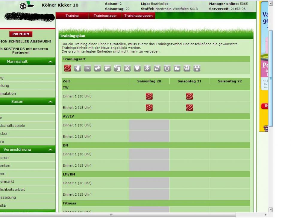 Mein Problem.Als ich mein Training wieder einstellen wollte,konnte ich mein Training für den 20.Spieltag(den heutigen) nicht einstellen.