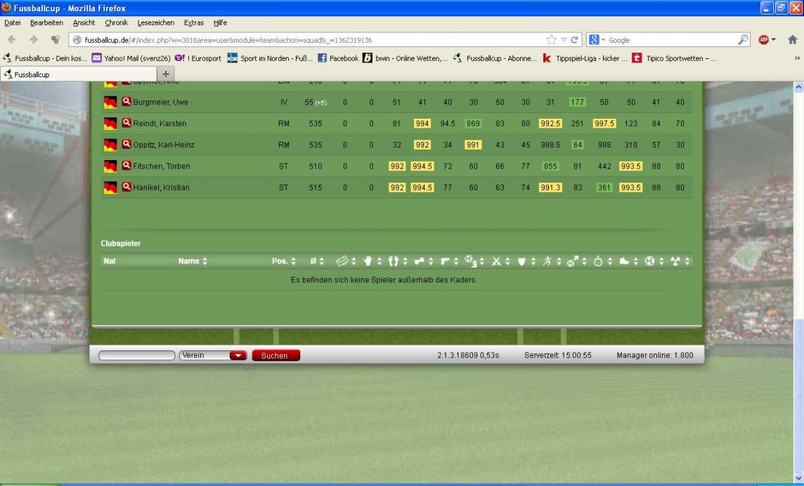 TS: 0:1 Niederlage gegen nen Drittligisten, der grad mal ne KS von 5980 aufzuweisen hat. Knapp 6000 KS weniger wie ich also und selbst wenn er nur 11 Spieler hat, habe ich ca. 2000 KS mehr auf dem Rasen gehabt wie er. Naja, er hat immerhin 1 mal aufs Tor geschossen. Vielleicht hätte ich selbst einfach mehr wie ca. 25 Torchancen rausarbeiten sollen.