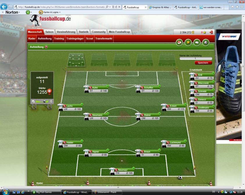 also ich habe aufstlelung ein torwart (stärke 100) dann 3verteidiger / av80-iv80-av85