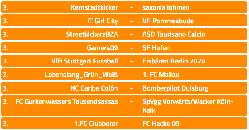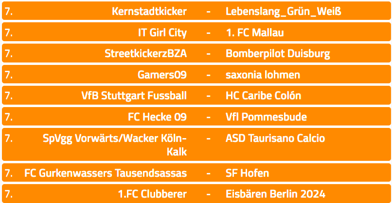 Alle Ergebnisse werden in einer Tabelle Breis gegeben. Egal wer wo spielt und gegen wen!
