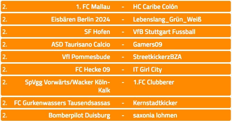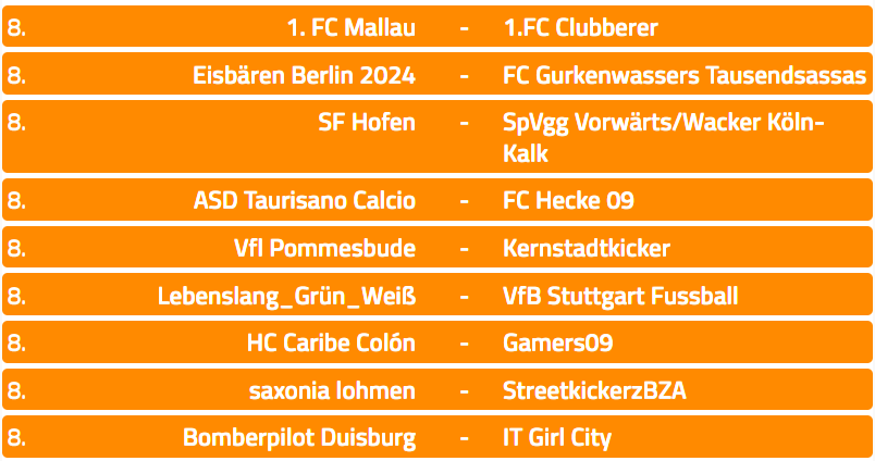 Gespielt werden dann die ersten 8 Spieltage von jeder Auslosung.