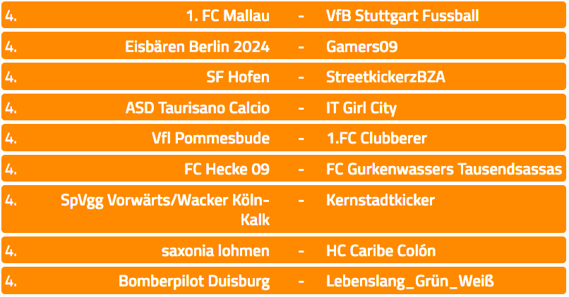 vom Turnier ausgeschlossen. Spenden werden trotzdem eingezogen + Strafe 500.000,00 pro Spiel was nicht gespielt wurde.