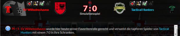 90 +1 SV Wilhelmshaven wurde hier heute seiner Favoritenrolle gerecht und verweist die tapferen Spieler von Tactical Hunters mit einem 7:0 in ihre Schranken.