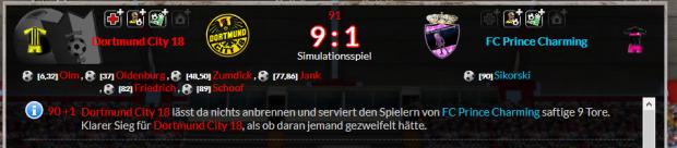 La Bestia Roja erledigt seine Pflichtaufgabe souverän, die Spieler von Borussia Banana Gißen haben hier die meiste Zeit nur zugeschaut.