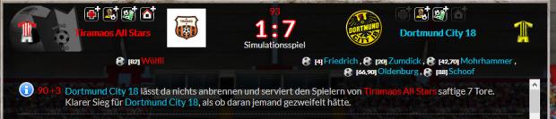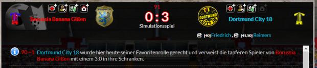 90 +1Dortmund City 18 wurde hier heute seiner Favoritenrolle gerecht und verweist die tapferen Spieler von Borussia Banana Gißen mit einem 3:0 in ihre Schranken.