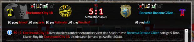 +91Dortmund City 18 lässt da nichts anbrennen und serviert den Spielern von Borussia Banana Gißen saftige 5 Tore. Klarer Sieg für Dortmund City 18, als ob daran jemand gezweifelt hätte.