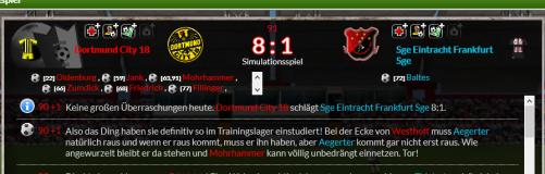 Keine großen Überraschungen heute. Dortmund City 18 schlägt Sge Eintracht Frankfurt Sge 8:1.