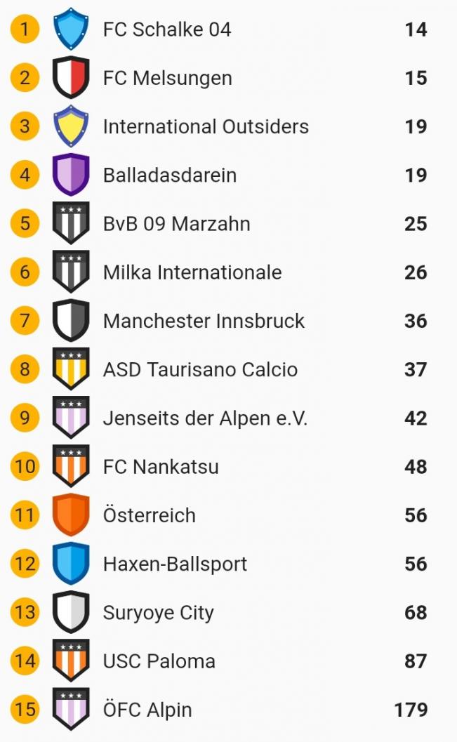 Wenn man sich zu so einem Turnier anmeldet, möchte man auch alle Spiele austragen. Das geht aber nur, wenn man verlässliche Spielkollegen hat. Dies habe ich aber in diesem Turnier bei einigen ( 2 ) Manager vermisst.