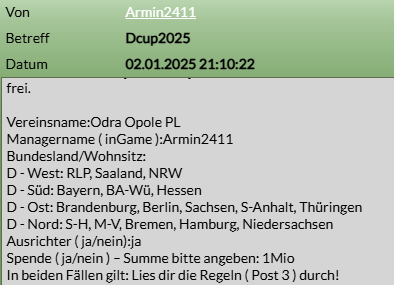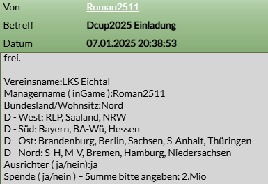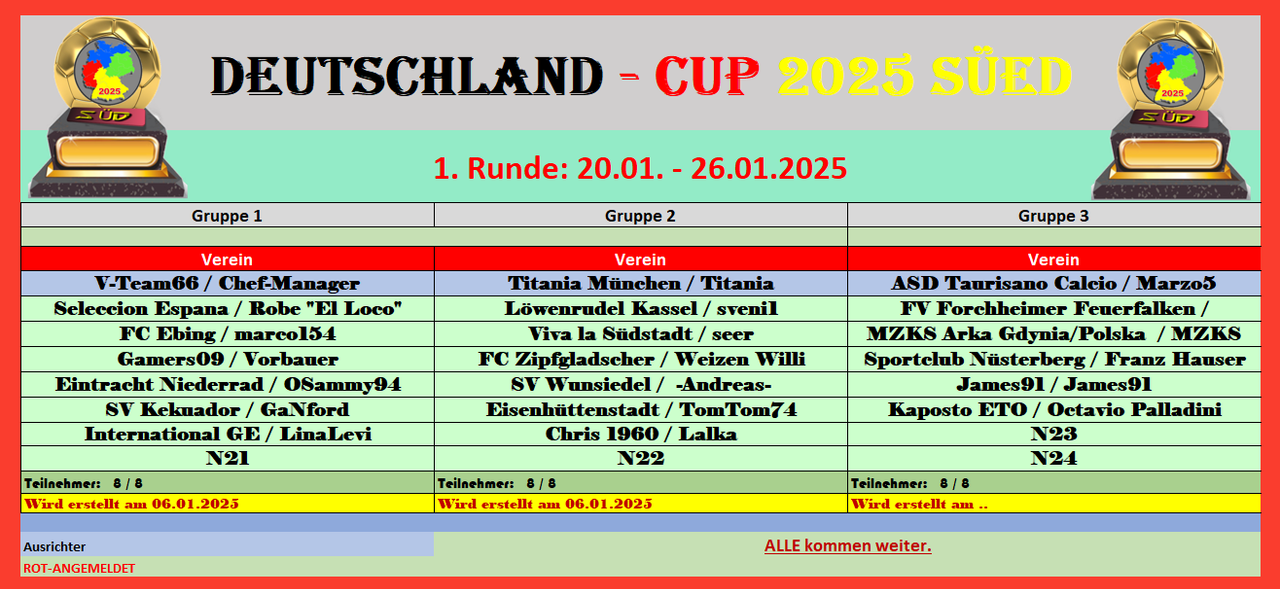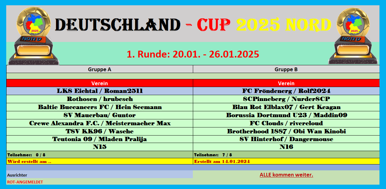 Anmelde &Ergebnis & Plauderthread Deutschland - Cup 2025 [Start 20.01.2025]