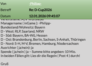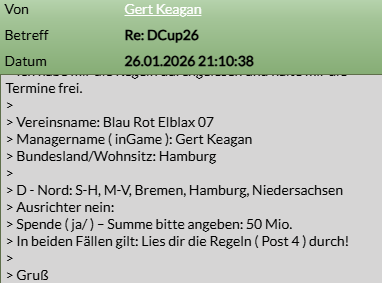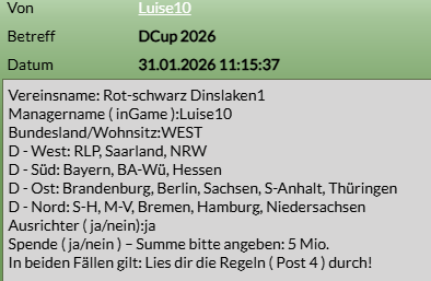 Ich habe mir die Regeln durchgelesen und halte mir die Termine frei.