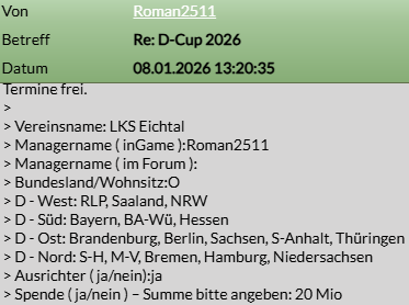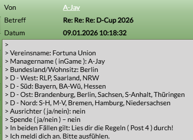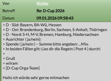 Ich habe mir die Regeln durchgelesen und halte mir die Termine frei.