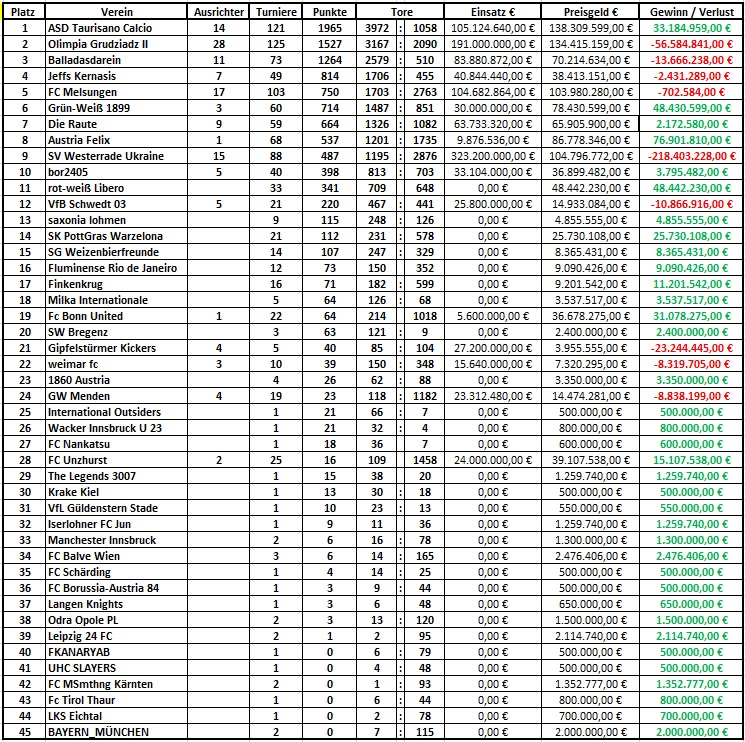 Beim Turnier nehmen nur Mannschaften teil, die sich hier selber anmelden.
